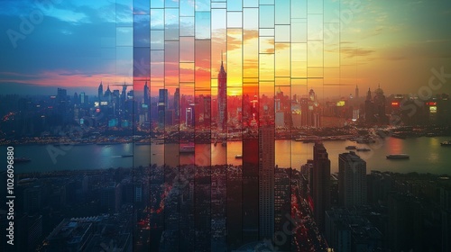 © Jaruwan, Fototapeta premium Time Lapse of City Workers at Sunset