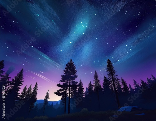 © Taylor, Fototapeta premium time lapse of the night sky above a forest landscape