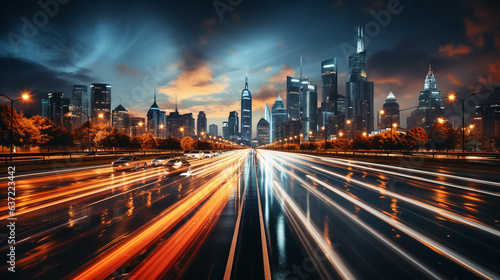 © ASHFAQ, Fototapeta premium Time-lapse photography of traffic, on the road, Blurred background