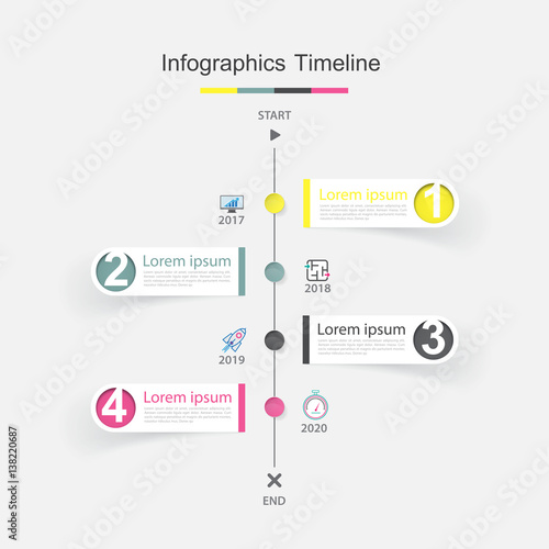 © kraifreedom, Naklejka premium Time line infographic and icons vector design template.