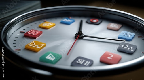 Fototapeta premium Time management concept with clock and task icons, productivity metaphor