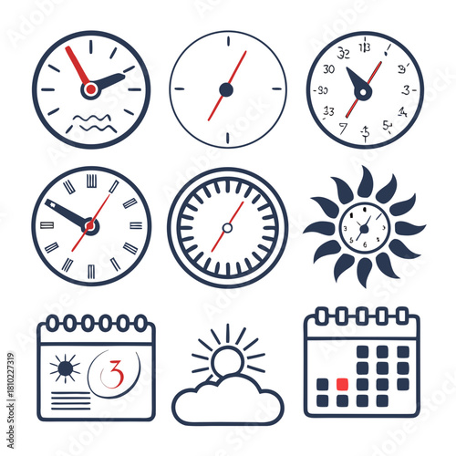 Obraz premium Time, Weather, and Calendar Icon Set Vector