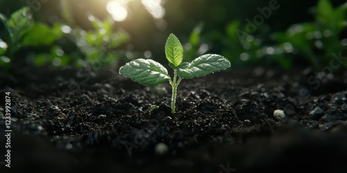 © xbzz, Naklejka premium Timelapse of seed sprouting in garden side view growth stages soft daylight illumination