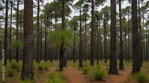Fototapeta premium Timeless Landscape: Long leaf Pine Forest in the 19th Century with Settlers...