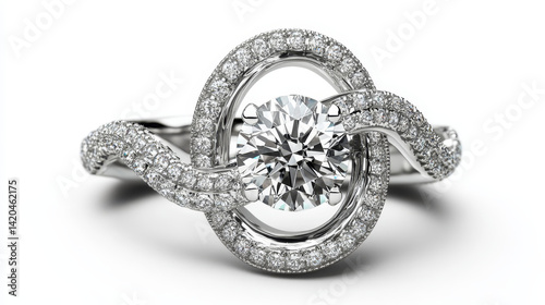 Obraz premium Timeless Sparkle: Elegant Diamond Ring on White Background