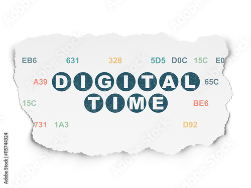 Obraz premium Timeline concept: Digital Time on Torn Paper background