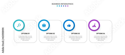 © shendart, Fototapeta premium Timeline infographic with infochart. Modern presentation template with 4 spets for business process. Website template on white background for concept modern design. Horizontal layout.