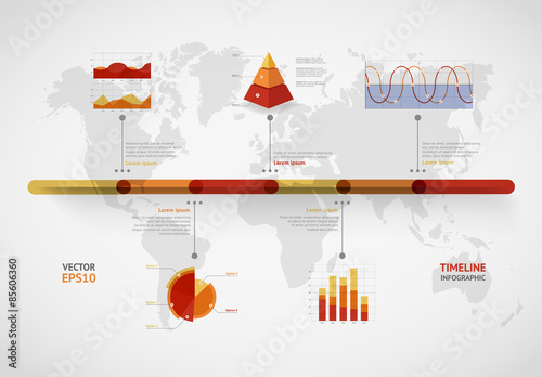 © bum_katya, Obraz premium Timeline vector infographic. World map