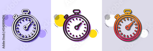 Fototapeta premium Timer line icon. Halftone dotted pattern. Gradient icon with grain shadow. Stopwatch symbol. Time management sign. Line timer icon. Various designs. Vector