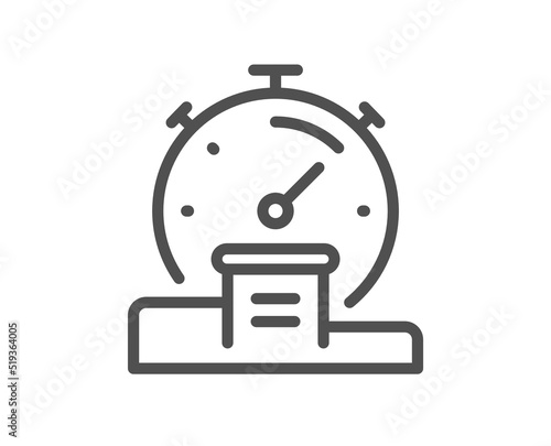 Fototapeta premium Timer line icon. Stopwatch time results sign. Podium with countdown clock...