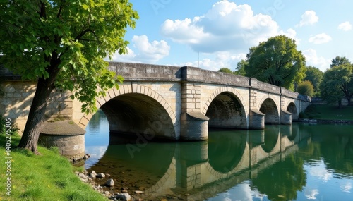 Fototapeta premium Timeworn Bordeaux stone bridge, Garonne River, French, old, bridge