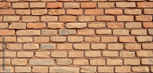 © Thiti, Obraz premium Timeworn horizontal brick wall seamless texture Rough, aged stone blocks, earthy tones, detail, stonework
