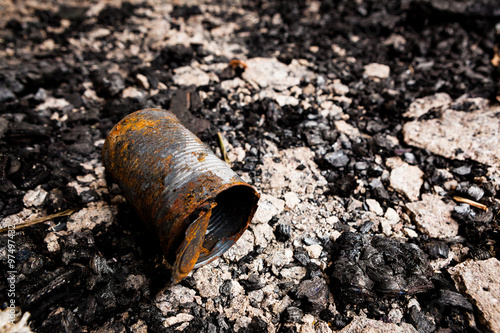 Obraz premium Tin can on burned ground