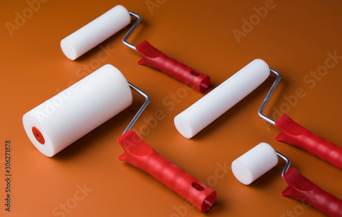 Fototapeta premium Tin cans with paint, brushes and bright palette of colors