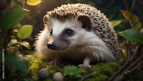 Fototapeta premium Tiny adorable hedgehog in a charming scene, generative AI