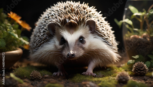 Fototapeta premium Tiny adorable hedgehog in a charming scene, generative AI