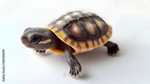 Obraz premium Tiny Baby Turtle With Spotted Shell On White Background