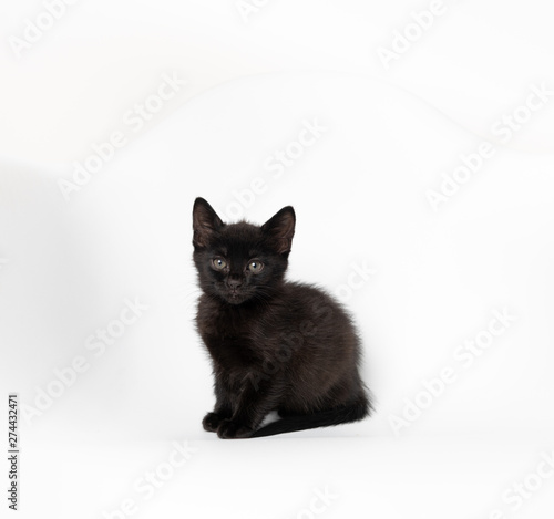 Fototapeta premium Tiny Black Kitten on White Chair
