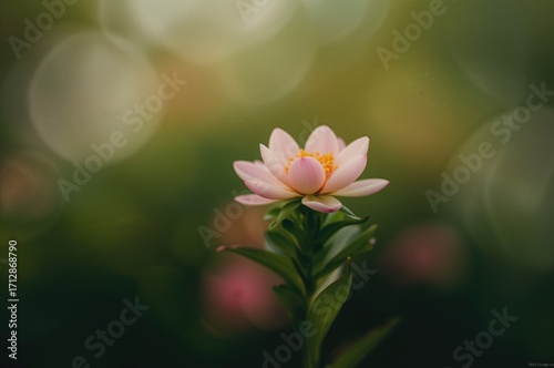 Fototapeta premium Tiny bloom against a lush green backdrop, blossom, flora, season of renewal,...