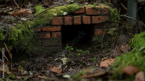 © nabila, Obraz premium Tiny Brick Structure Surrounded by Greenery in a Forest Setting