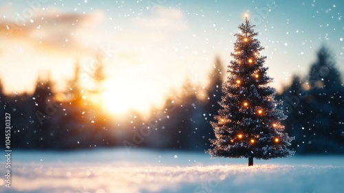 © Diffin, Fototapeta premium Tiny Christmas tree snowy setting