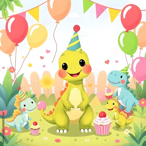 © lestat, Obraz premium Tiny Dinosaur's Birthday Party