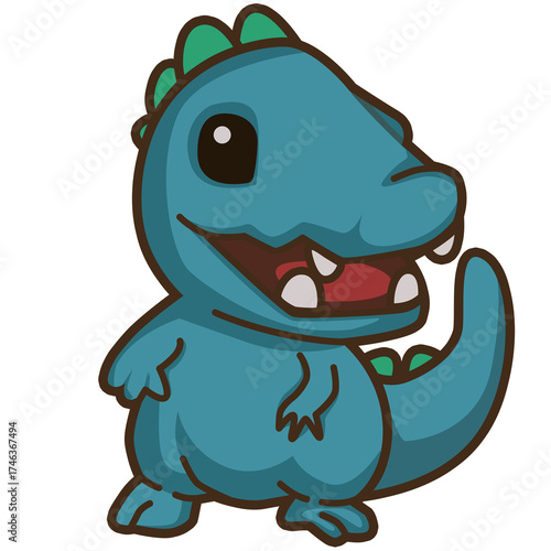 © Ірина Савченко, Obraz premium Tiny dinosaur with open mouth, showing excitement or joy. Fun character for kids or game illustrations.