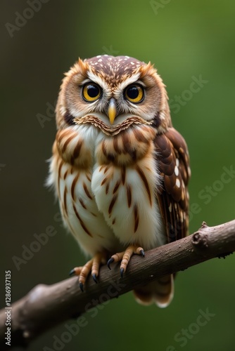 © tpadobestock, Naklejka premium Tiny Eurasian pygmy owl perched on a slender branch , plumage, owl