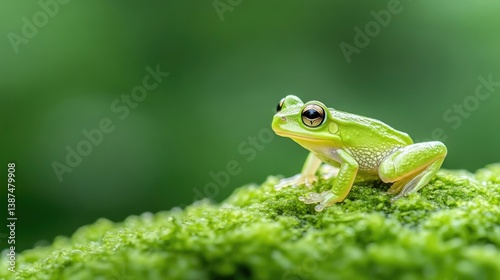 © MAKASIHMAS SIDNEY, Obraz premium Tiny green frog on moss