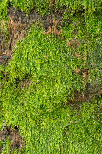 © k_samurkas, Obraz premium tiny green moss that grows on palm tree trunk