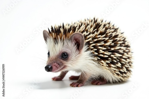 Obraz premium Tiny hedgehog, curled in defensive ball on pure white background, adorable,...
