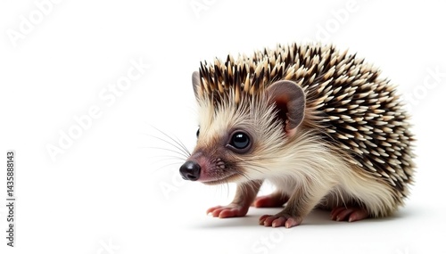 Fototapeta premium Tiny hedgehog curled, isolated on pure white background, wildlife, image,...