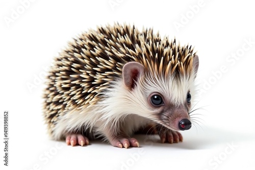 © Sarayuth, Fototapeta premium Tiny hedgehog isolated on pure white background, curled in a ball , resting, element