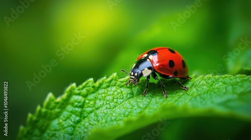 Fototapeta premium Tiny Ladybird Exploring Leaf in Macro Shot - Nature Biodiversity Concept
