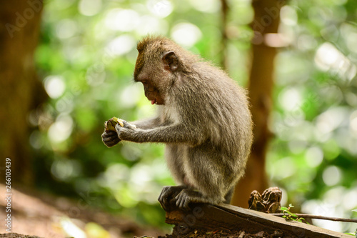 © Jorge, Obraz premium Tiny monkey eating at forest, Bali