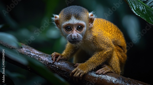 © AFFANYUDA, Obraz premium Tiny monkey on a branch, intense gaze
