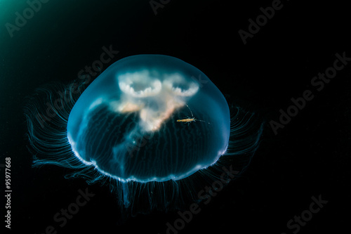 © kondratuk, Fototapeta premium Tiny shrimp riding jellyfish