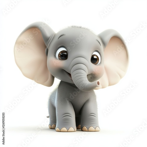 © Svitlana, Naklejka premium Tiny smiling elephant with oversized ears, isolated on white
