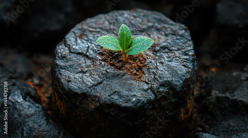 Fototapeta premium Tiny sprout emerging from a dark rock
