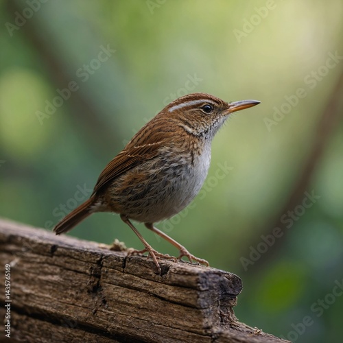 © Muhammad, Fototapeta premium Tiny Wren on Wooden Beam