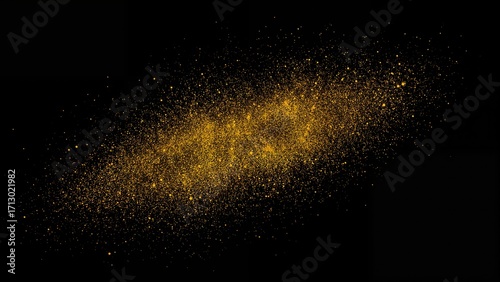 Fototapeta premium Tiny yellow dust fragments drifting through a black void, appearing like mist.