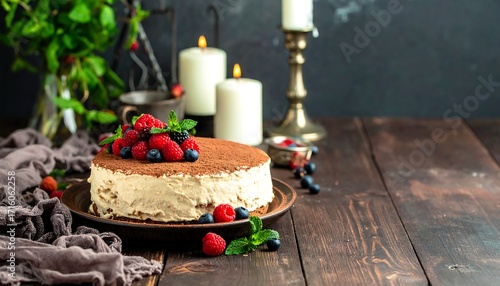 Naklejka premium Tiramisu cake with berries