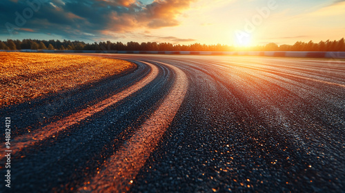 Fototapeta premium tire marks on a race track, showcasing the dynamic motion and power of high-speed driving