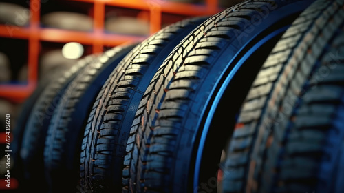 Fototapeta premium Tire Shop Interior, Auto Repair Service Center with Tires on Display