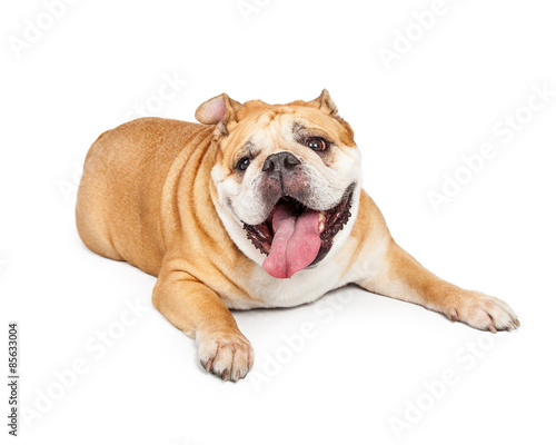 Fototapeta premium Tired Old Bulldog Laying Tongue Out