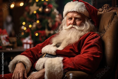 © bramthestocker, Obraz premium Tired Santa Claus sitting in the chair