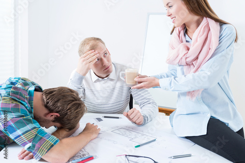 Obraz premium Tiring morning at work