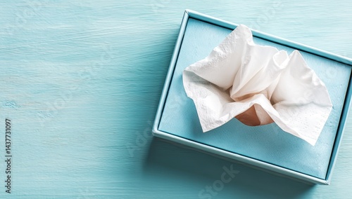 Obraz premium Tissue Box on Light Blue Wooden Surface
