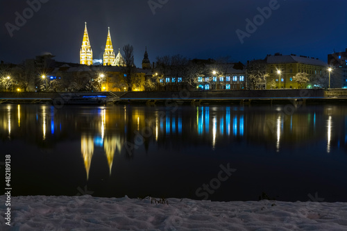 © belizar, Obraz premium Tisza river and city of Szeged in winter