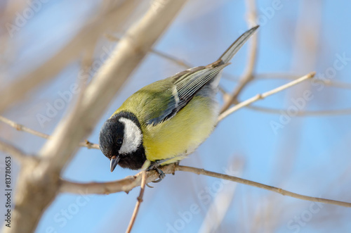 © elvis_dead, Fototapeta premium Tit sit on the tree. Side view. Russian nature